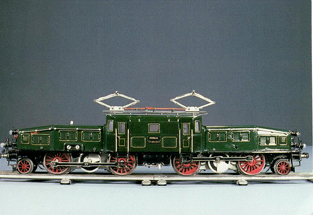 Diese grüne, handlackierte, 2-motorige Lokomotive lässt sich mittels 66er-Fern- und Handumschaltung bedienen. Sie verfügt über zwei beweglich gelagerte Vorbauten. Die Achsanordnung entspricht nicht dem Original der SBB, so sind je Motor lediglich zwei Achsen (statt drei) angetrieben. Ist aber wohl konstruktionstechnisch der Kurvengängigkeit geschuldet. Die beiden Pantografen sind nicht funktionstüchtig. Vier Angeltüren sind beweglich ausgeführt. Die Lok hat Führerstandsbeleuchtung sowie vorne wie hinten eine Stirnbeleuchtung mit je drei Lampen. Hinten befindet sich die Vorrichtung für den Anschluss der Zugsbeleuchtung. LüP. 45 cm