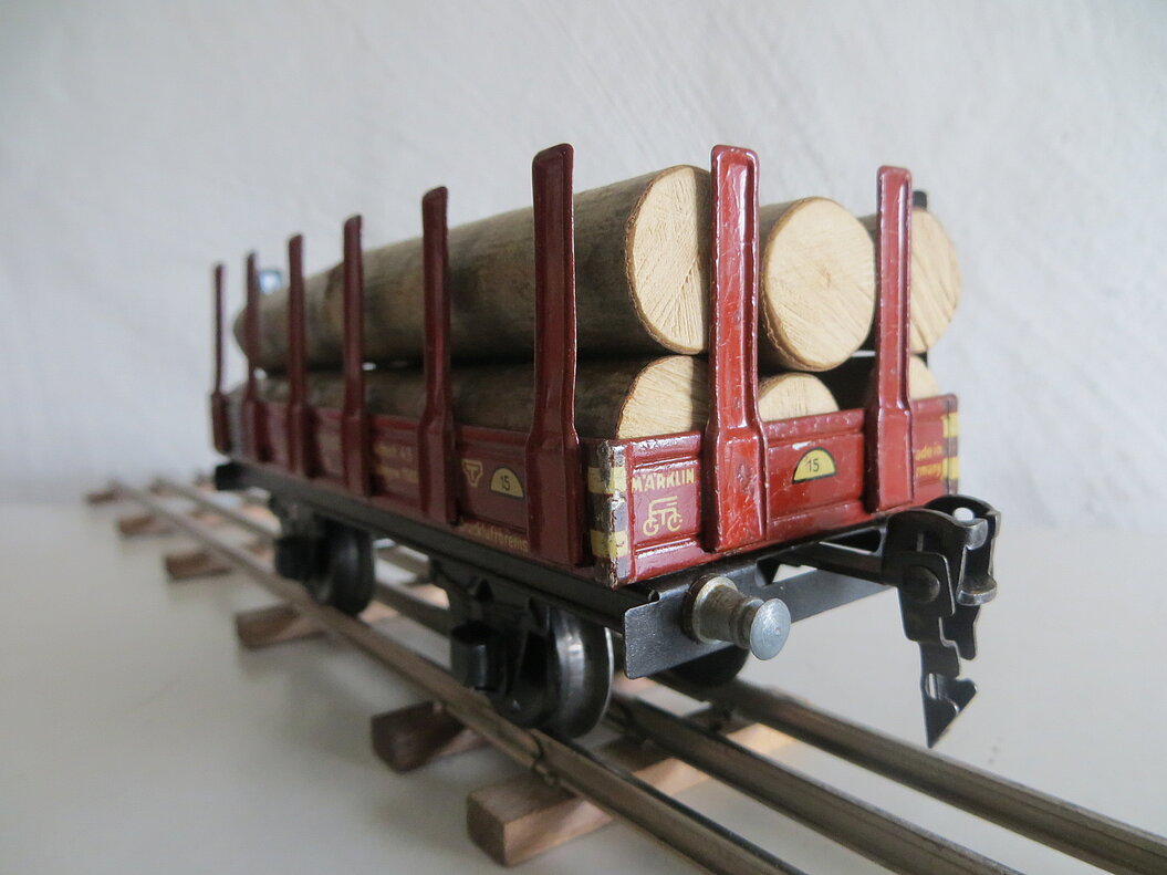 Rungenwagen, beladen mit Stammholz, von Märklin