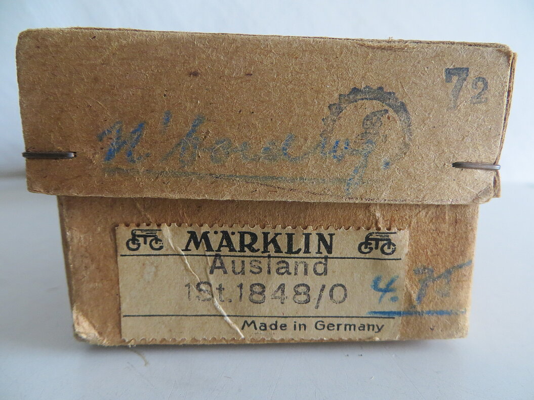 Besonderes: Dieser Wagen war für den Export ins Ausland vorgesehen. Dafür wurden verschiedene der lithographierten Anschriften sorgfältig übermalt und die Etikette auf der braunen Schachtel mit dem Stempel “Ausland” versehen. Es ist auch vorgekommen, dass Etiketten direkt mit “Schweiz” gestempelt wurden (siehe Personenwagen 1727 SBB).