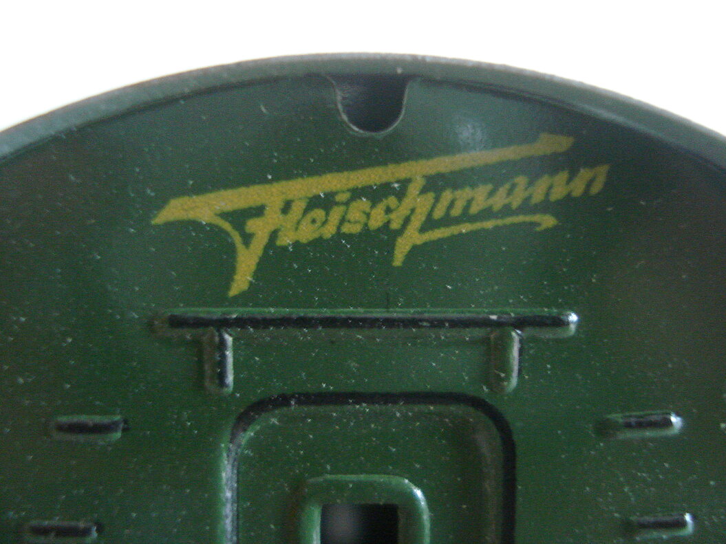 2-achsiger Gepäckwagen "Typ Donnerbüchse" aus Stahlblech, schwarzes Chassis mit Trittbrettern, grüner Aufbau, hellgraues Dach mit angedeutetem Aufbau, "Fleischmann"-Logo stirnseitig, schwarze Bakelit-Räder, 2 Schiebetüren zum Öffnen, 2 Angeltüren zum Öffnen, LüP. 17 cm, farbige OVP