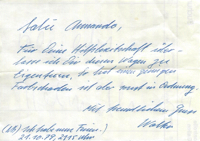 Dankesschreiben von Walter Nüesch (21.10.1979) an Armando Schneider, der ihn bei der Produktion der Spur 0-Wagen unterstützt hat.