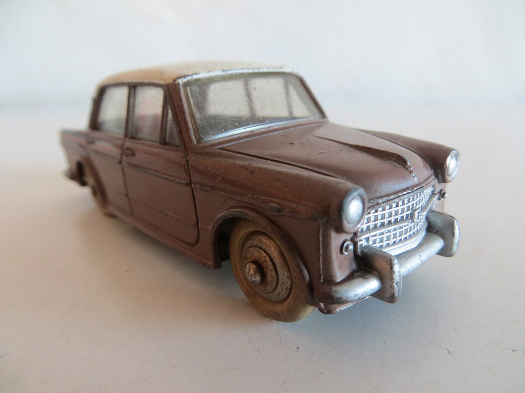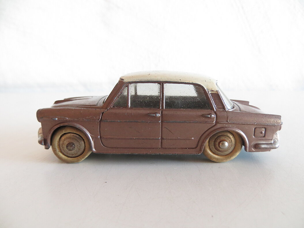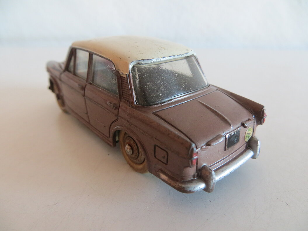 Zweifarbiges Guss-Modell (braun/crème), Leichtmetall-Räder mit weissen Pneus, schwarzes Bodenblech (genietet), silberfarbener Kühlergrill, vordere und hintere Stossstange sowie Lampen, rot gemalte Rücklichter, schwarzes Nummernschild hinten, Fenster mit Cellons, keine Inneneinrichtung, Länge 90 mm